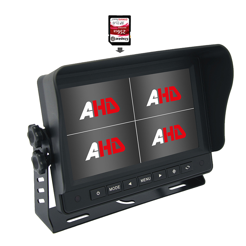 Quad AHD -skjermer: Våre Quad AHD -skjermer tar kjøretøysikkerhet til neste nivå. Disse systemene er i stand til å vise og spille inn fire videostrømmer samtidig, og tilbyr en full surroundvisning. Med flere kanaler visningsmodus og uavhengig filarkivering, kan drivere overvåke bak- / fronten / siden av kjøretøyet med letthet.
