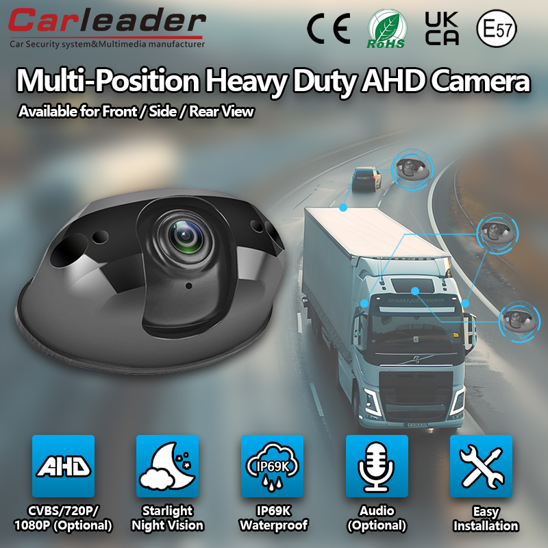 I kjøretøyfeltet, Carleader1080P AHD Starlight Super vidvinkel ryggekameraer mye brukt i lastebiler, busser, skolebusser, RV-teknisk utstyr og andre tunge kjøretøy. Det kan brukes som front-, side- og ryggekamera, og kan til og med kombineres med MDVR for å oppnå videoopptak, fjernovervåking, flåtestyring og andre funksjoner