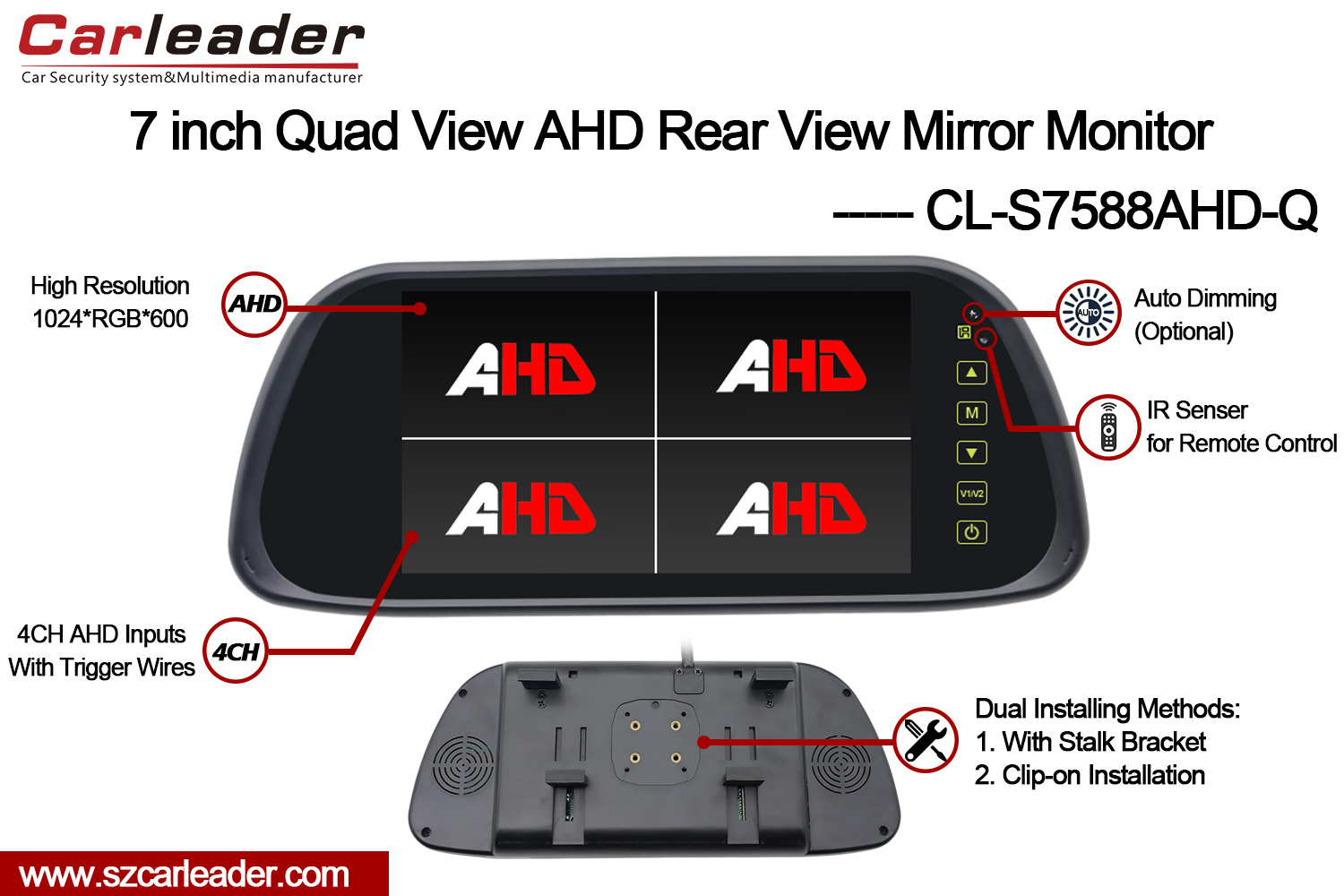 Hvorfor velgeLeder7 tommers 4CH Quad AHD bakspeilskjerm Støtte for dobbel installasjon?