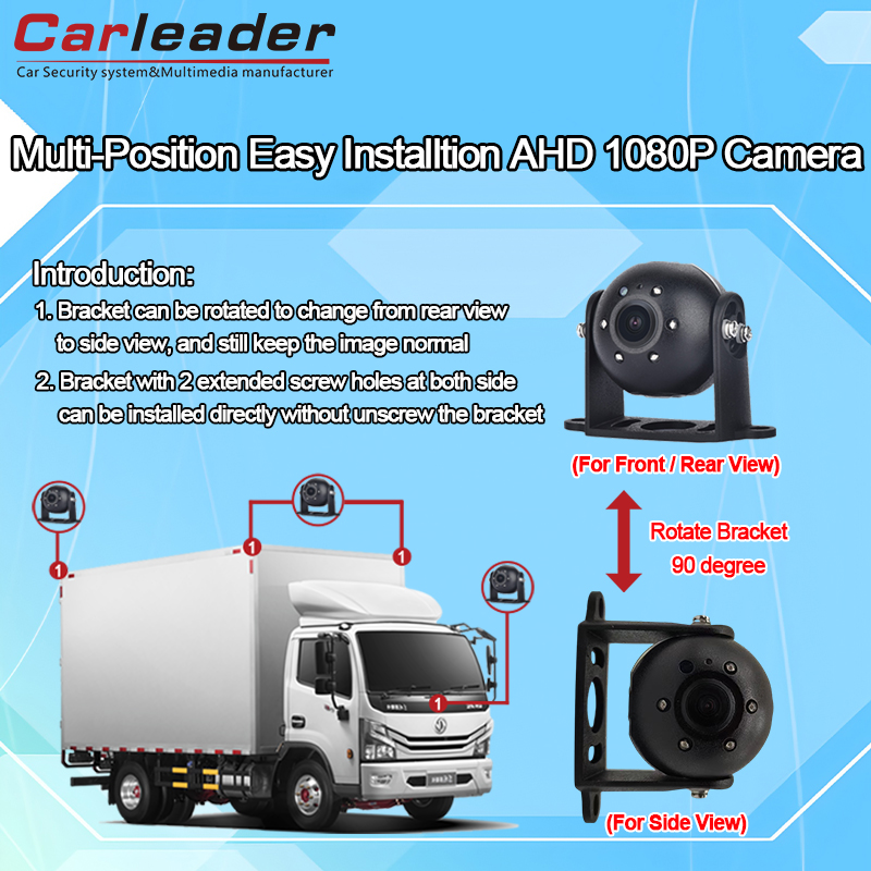 LederAHD Heavy Duty Vehicle Front/Side/Rear View-kamera med brakettinstallasjonshull oppe, nede, høyre, venstre, som lar kameraet justere kamerabraketten for å passe til forskjellige kameraposisjoner, for eksempel front-, side- og bakoversikt, gjør dette kameraet mer kompatibelt for kjøretøysikkerhetsovervåkingssystem.