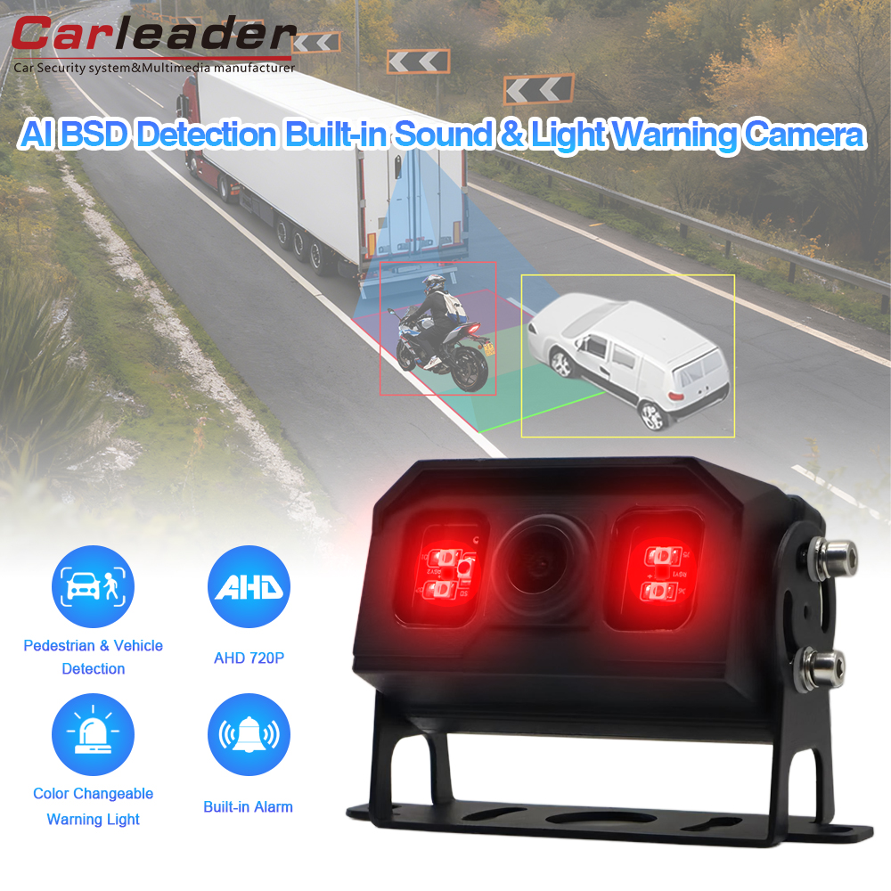 Carleader NylansertAI blindsonedeteksjon Bakkamera Innebygd lyd- og lysalarm, et banebrytende AI-kamera støtter fotgjenger- og kjøretøydeteksjon, kamera med innebygd varsellys og alarmfunksjon, kan fungere sammen med skjermen vår, kan også passe med vår AI-monitor støtter AI-kalibrering, gjør det mulig å justere kameraets deteksjonssonestørrelse og annen AI-funksjon.