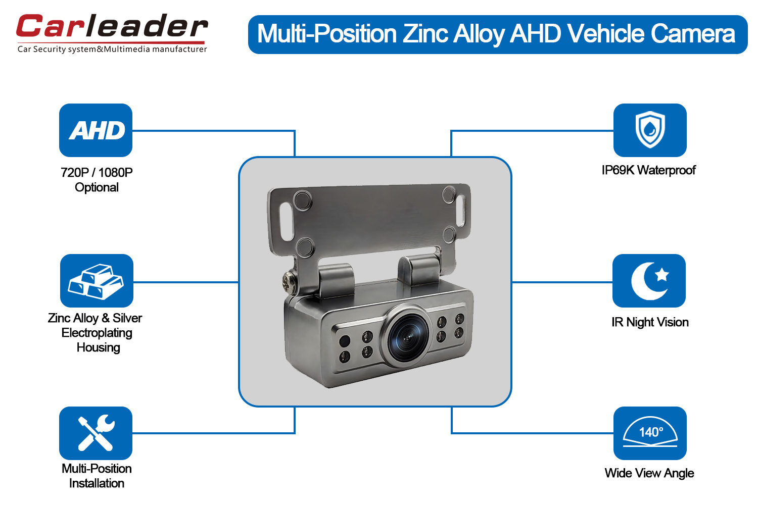 LederMultiposisjon AHD sølv galvanisert ryggekamera for kjøretøykan brukes som ryggekamera, sidekamera eller frontmonterte kameraer. Hvis du er interessert i ryggekameraer til biler, spesielt de som er laget av sinklegering og med AHD 1080P-oppløsning. Ryggekameraene er vanntette og støvtette, med brede visningsvinkler, og egner seg veldig godt til bruk i bilen. De har også nattsynsfunksjoner og parkeringsguider. Vil du vite mer om ryggekameraer? Ta gjerne kontakt med oss!